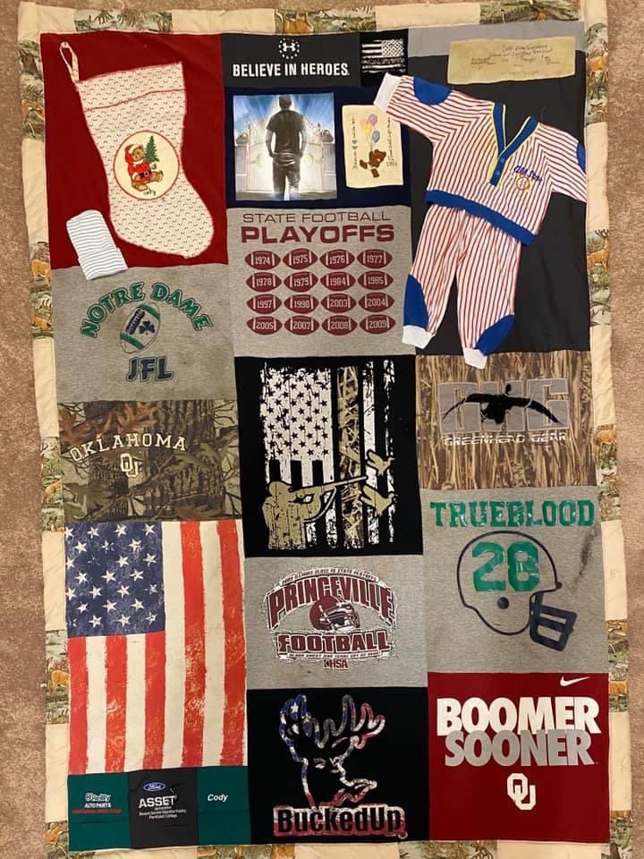 A few months ago, a very kind person made memory quilts for me and my daughter out of my son’s clothing. The warmth the quilt provides, being wrapped in the memories of my son, is a feeling that I cannot define. I, also, cannot describe the emotions when she did not want to accept payment. I did pay and asked her to donate that money to her favorite charity, but that does not negate her true act of mercy! Time to pay it forward.