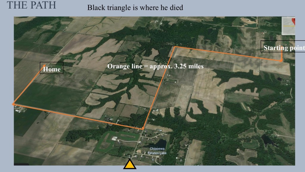 Remember, he was fishing just a few miles behind our home. A few turns and he would have been home. Here is a little perspective:
